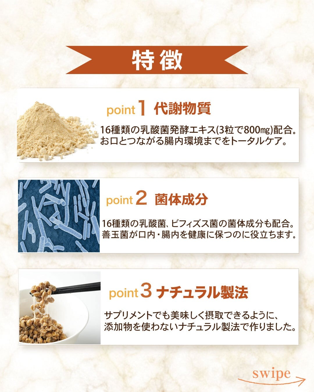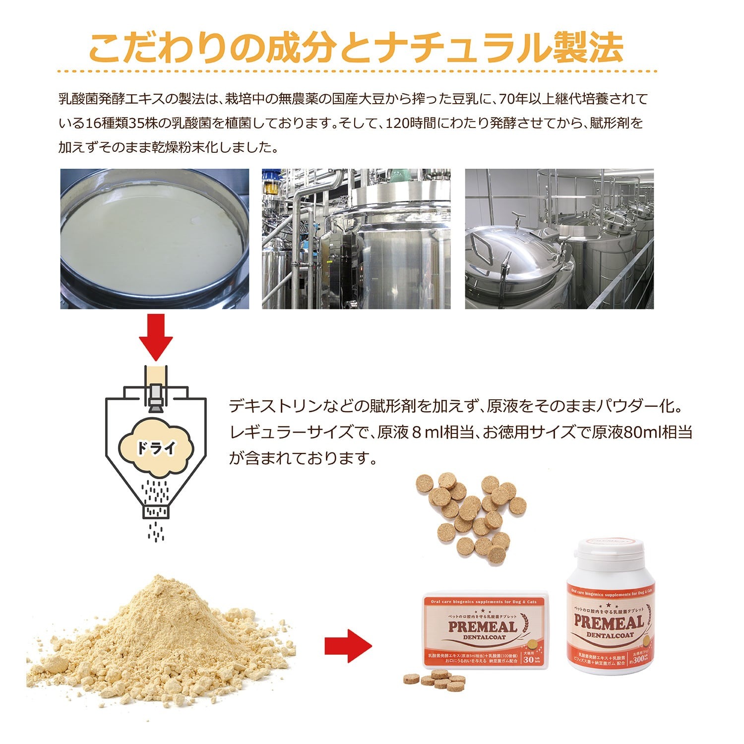 PREMEALは3粒で16種類もの乳酸菌・ビフィズス菌がヨーグルト1カップ分と、乳酸菌たちが作る乳酸菌生産物質を800㎎取れるようにしております。