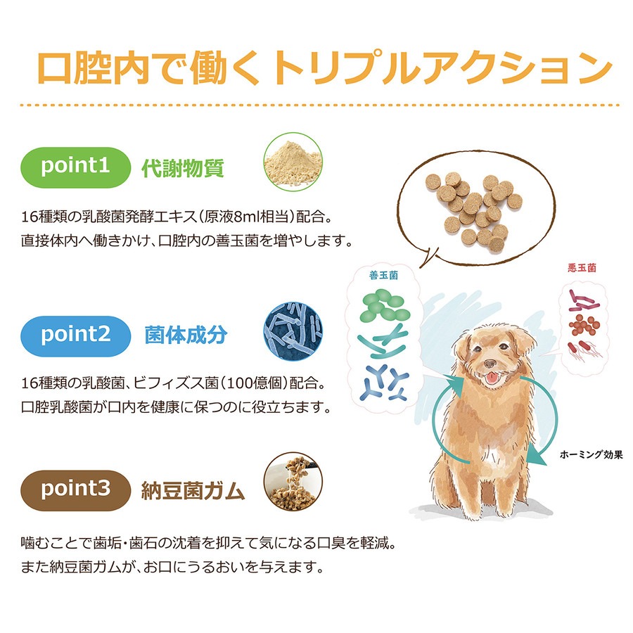 嗜好性も高く、美味しさ抜群の添加物を使わないトリーツ&サプリメントです。継続することで、いつでも、どこでも息さわやかで口腔内を健康に保つことができます。