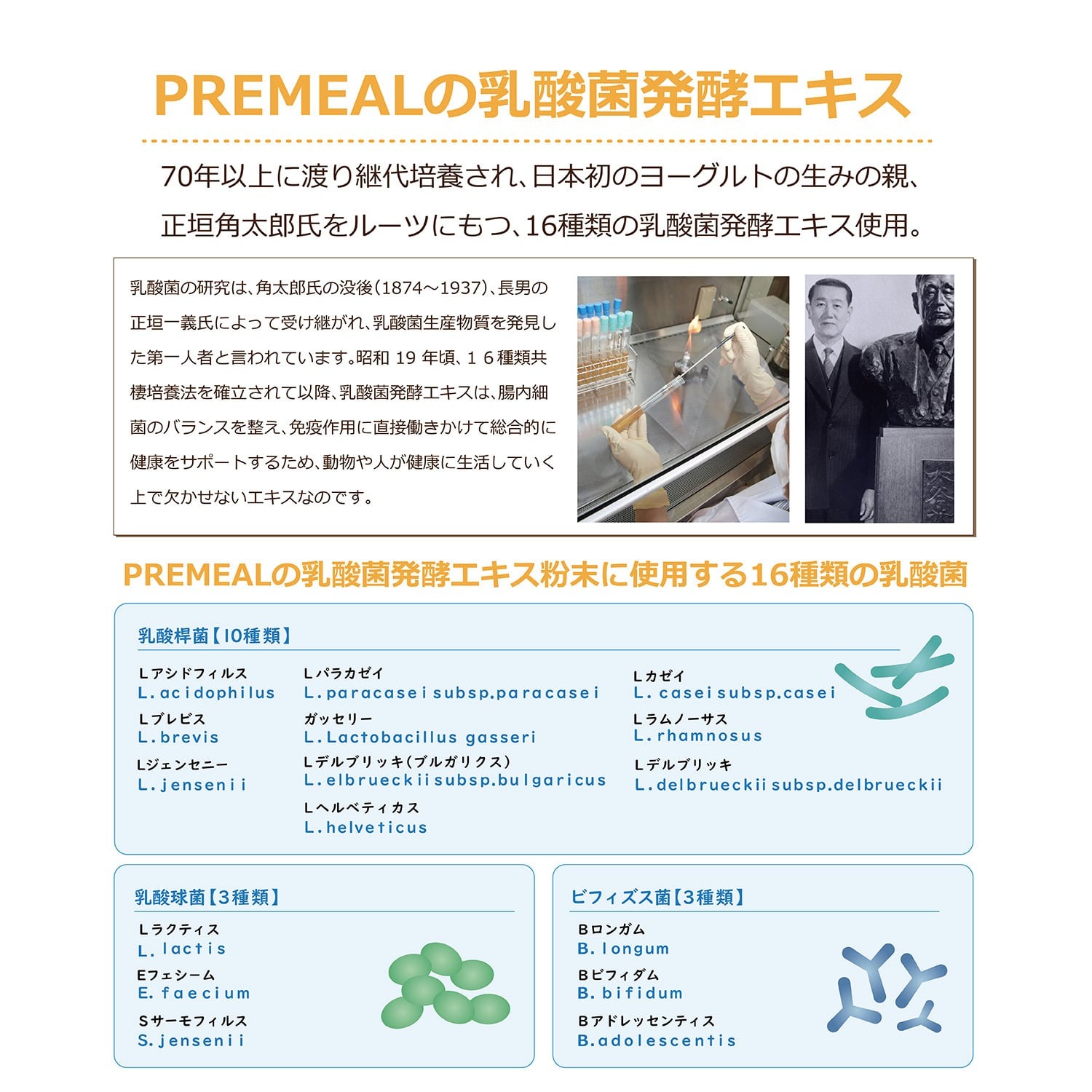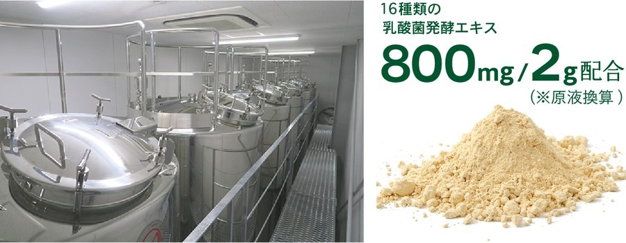 さらに、16種類の乳酸菌配合。栽培中の無農薬の国産大豆から搾った豆乳に、70年以上継代栽培されている16種類の乳酸菌を植菌しています。乳酸菌は、相乗効果でコラーゲンペプチドの吸収を助け、ペットの皮膚・被毛の健康に役立ちます。