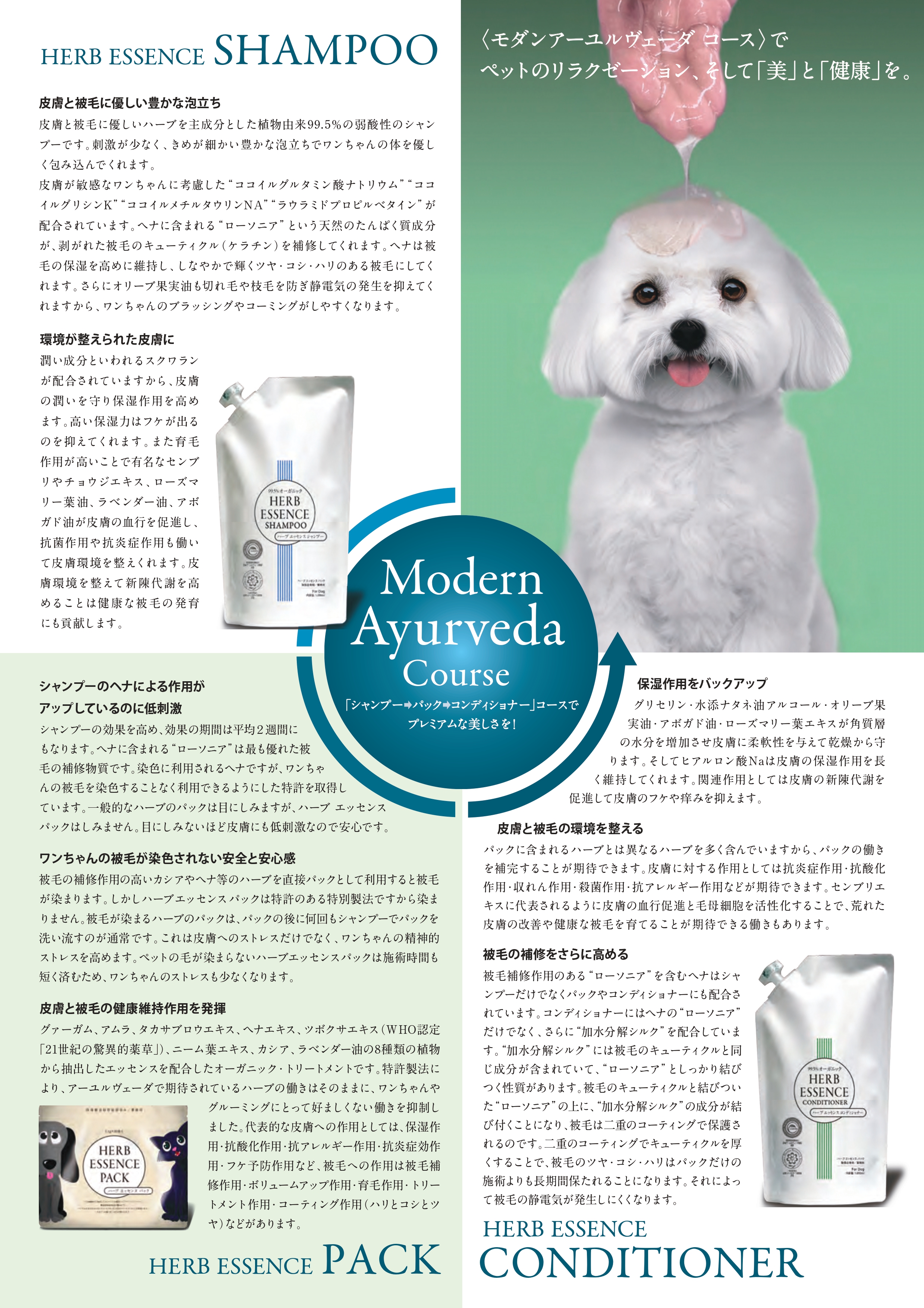 皮膚と被毛に優しいハーブを主成分とした植物由来99.5%の弱酸性のシャンプー