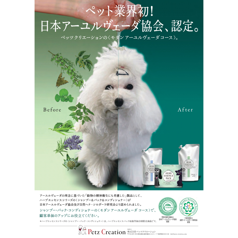 刺激が少なく、きめが細かい豊かな泡立ちで、皮膚が敏感なワンちゃんに考慮した成分が配合されています。また、ヘナに含まれる“ローソニア”という天然のたんぱく質成分が、剥がれた被毛のキューティクル(ケラチン)を補修。ヘナは被毛の保湿を高めに維持し、しなやかで輝くツヤ・コシ・ハリのある被毛に。さらにオリーブ果実油も切れ毛や枝毛を防ぎ静電気の発生を抑えてくれますから、ブラッシングやコーミングがしやすくなります。