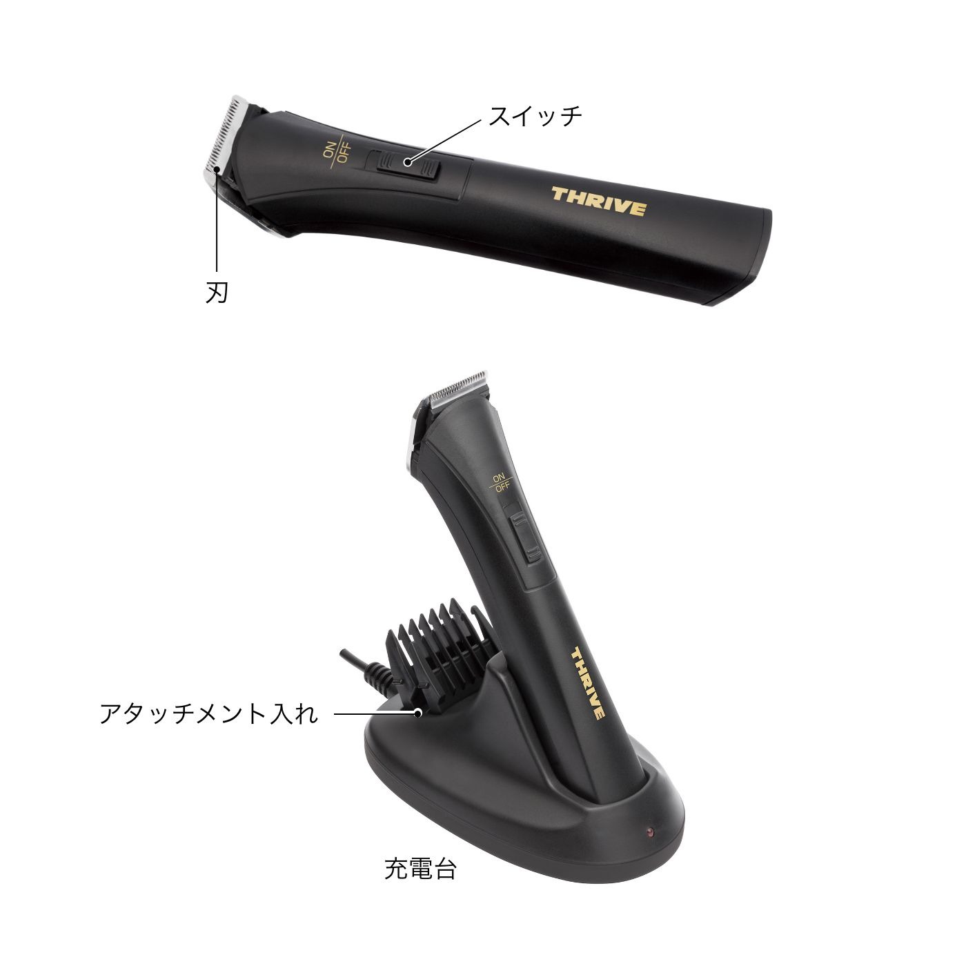 本体、標準刃(0.5mm)、充電台(アダプター)、