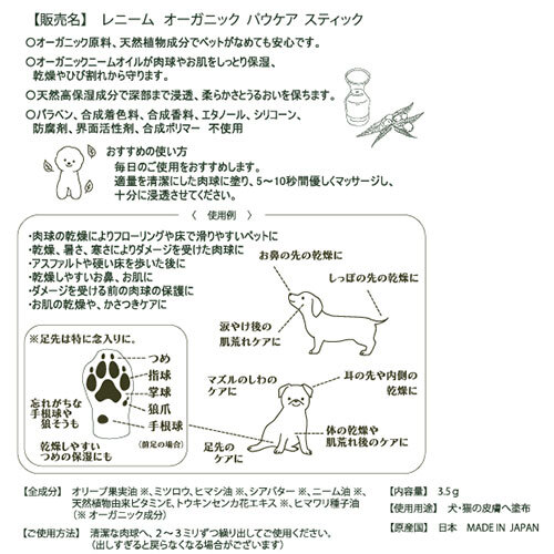 オーガニック原料、天然植物成分でパートナー(愛犬・愛猫)がなめても安全です。オーガニックニームオイルが肉球やお肌をしっとり保湿、乾燥やひび割れから守ります。