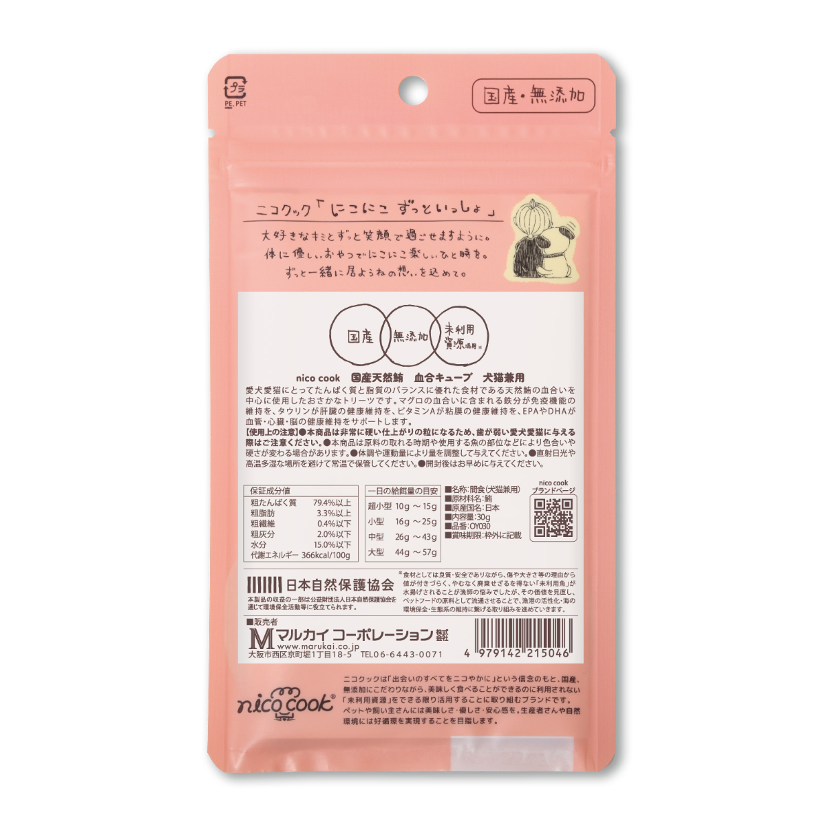 愛犬愛猫にとってたんぱく質と脂質のバランスに優れた食材である天然鮪の血合いを中心に使用したおさかなトリーツです。マグロの血合いに含まれる鉄分が免疫機能の維持を、タウリンが肝臓の健康維持を、ビタミンAが粘膜の健康維持を、EPAやDHAが血管・心臓・脳の健康維持をサポートします。