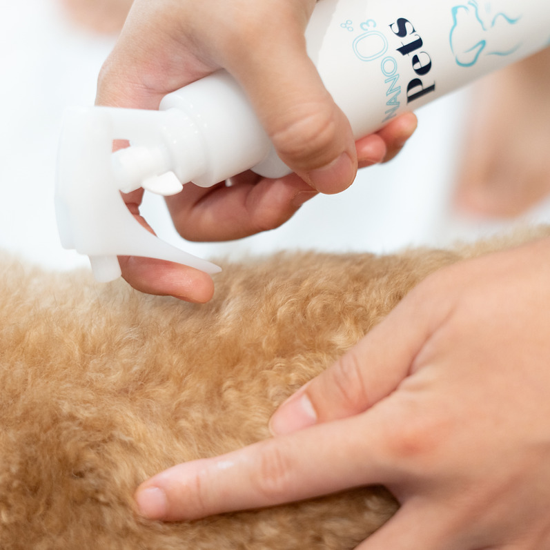 愛しいペットの涙やけや皮膚、粘膜/傷口周りのケアに。オゾンをナノサイズの極微小気泡として安定化させるオゾンナノバブル技術により開発。ナノオゾンペッツを使って洗浄することで菌・ウイルスを抑制し、清浄化します。使い方は簡単。菌やウイルスが気になる部位に噴霧するだけです。直接噴霧が難しい場合には、清潔な脱脂綿・綿棒・口腔ケア用指サックなどに含ませて対象部位を拭うだけでもOKです。