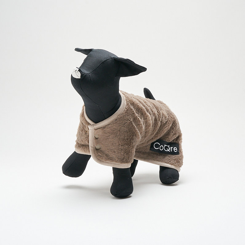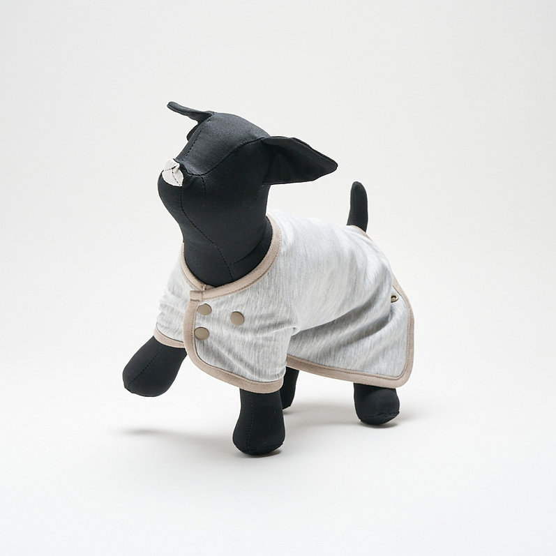 体の上からかけて着用でき、トッド釦仕様で体の不自由なワンちゃんにも負担なく着せ付けしやすい仕様です。裏面のプリントは、表地の柄面を体側で使用しても効果は落ちません。(裏面にSPAOREプリントが入ります)