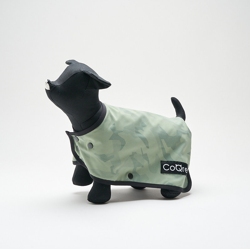体の上からかけて着用でき、トッド釦仕様で体の不自由なワンちゃんにも負担なく着せ付けしやすい仕様です。裏面生地は、撥水加工生地で簡単な水をはじくので、雨の日のお散歩着にも。裏面のプリントは、表地の柄面を体側で使用しても効果は落ちません。(裏面にSPAOREプリントが入ります)