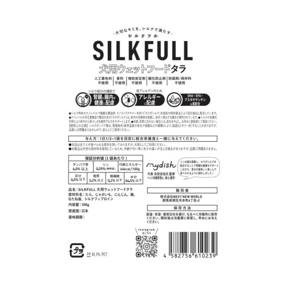 | 給与量 | 1日1/2~1袋を目安に総合栄養食と一緒に与えてください。 |