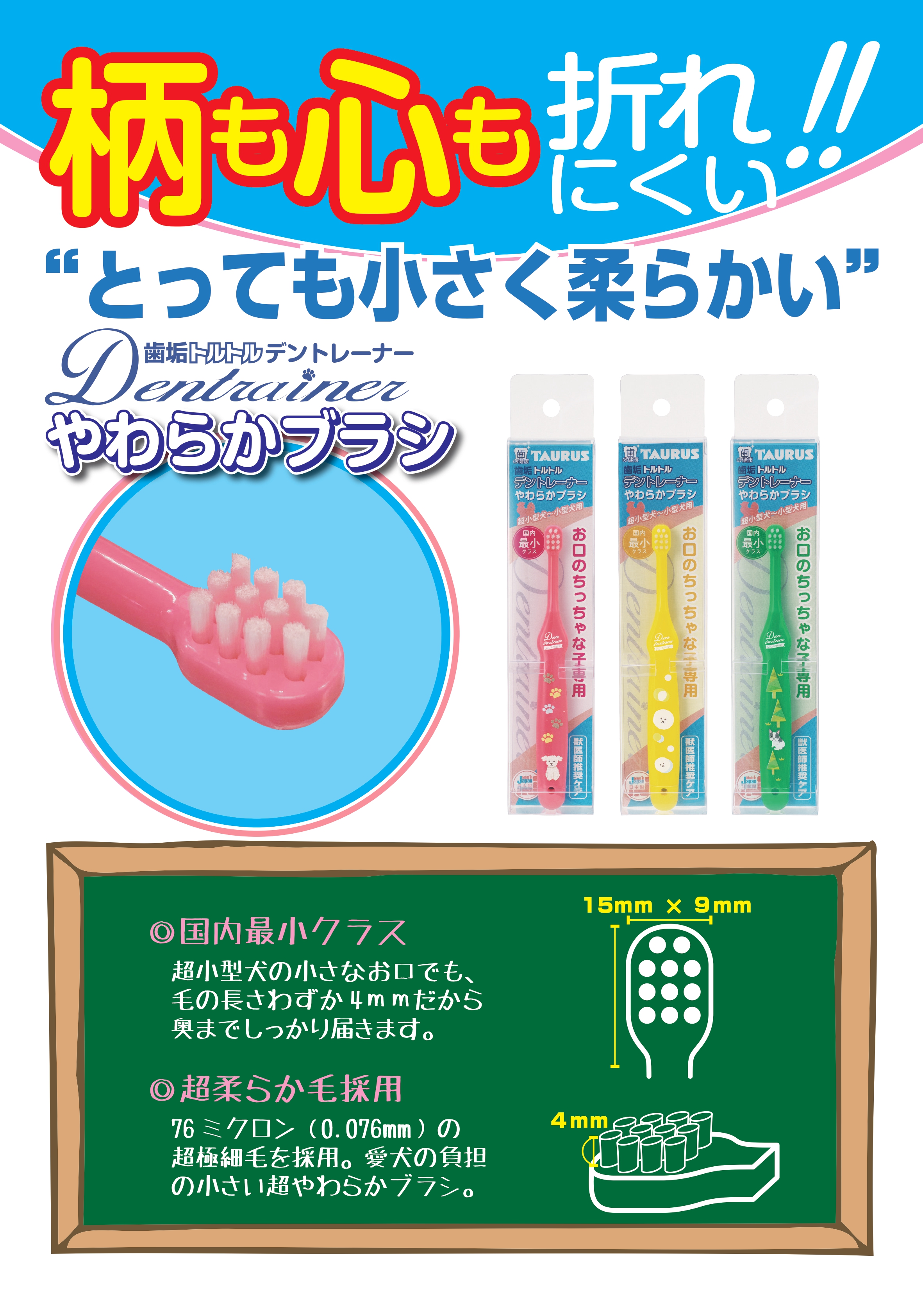 - 超小型犬の小さなお口でも、毛の長さわずか4mmだから奥までしっかり届きます。