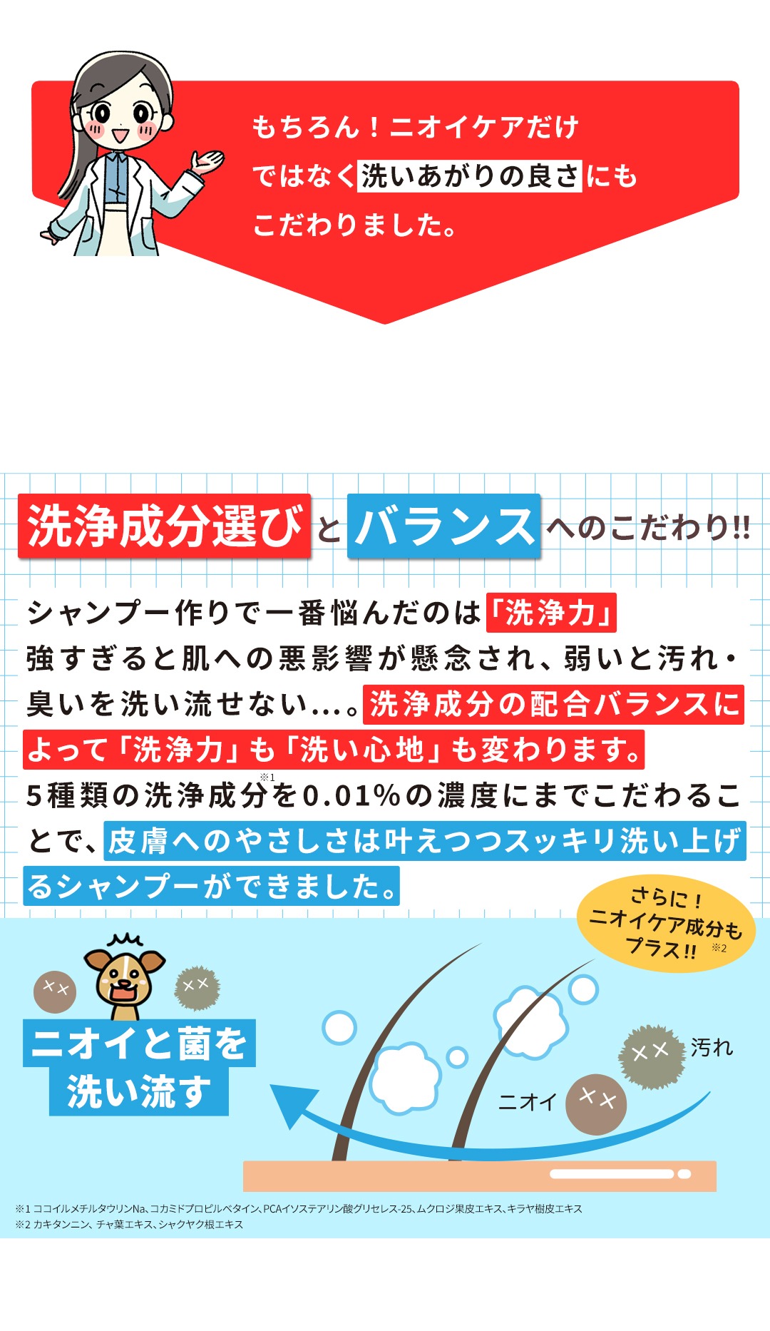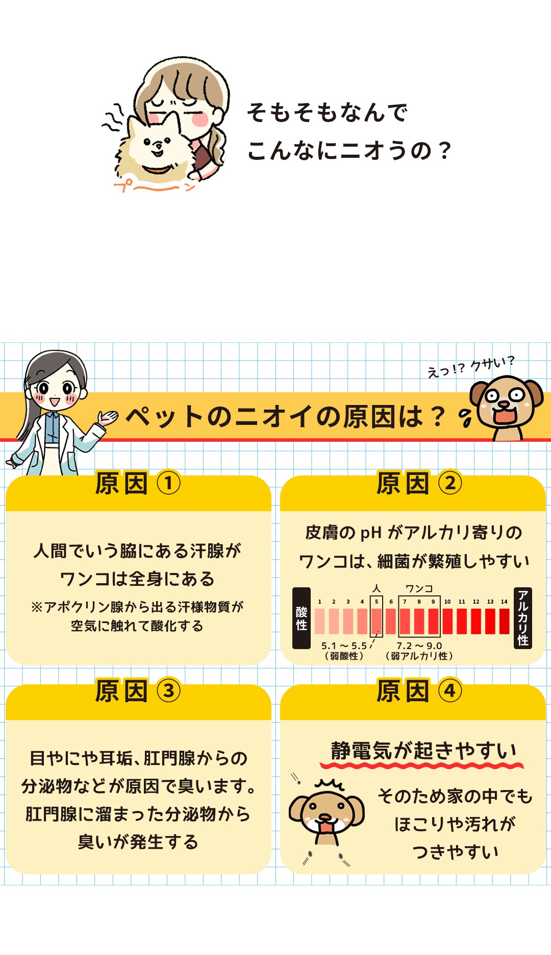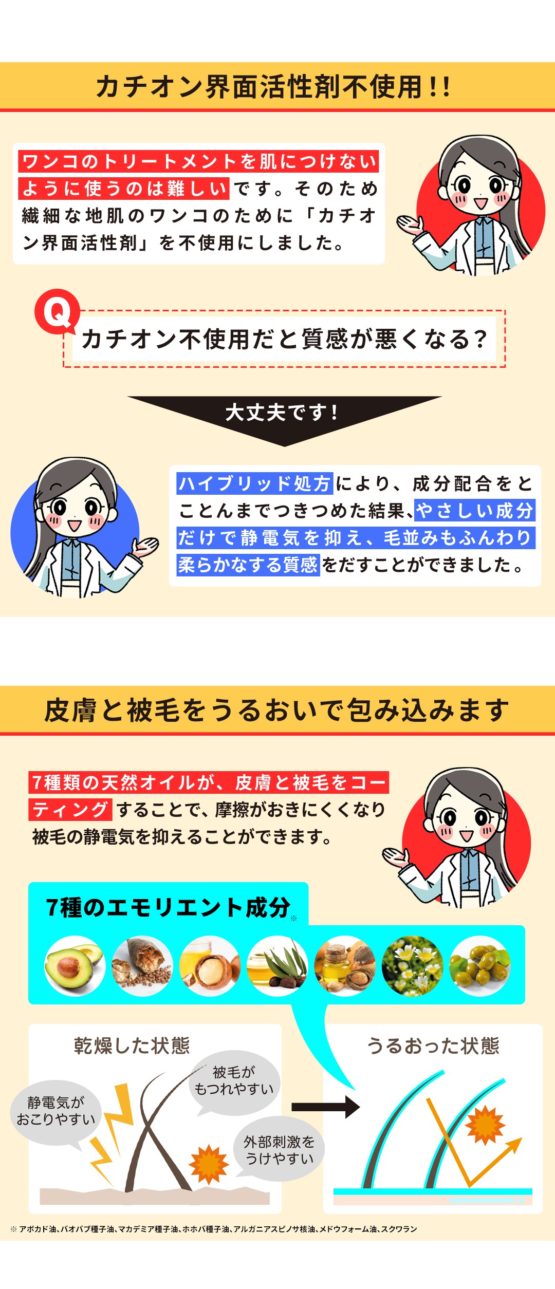 赤ちゃんのように繊細な皮膚であるペットへ、直接付けてもやさしく使える成分と使用感。ペットの健康と笑顔にぴったりと寄り添います。