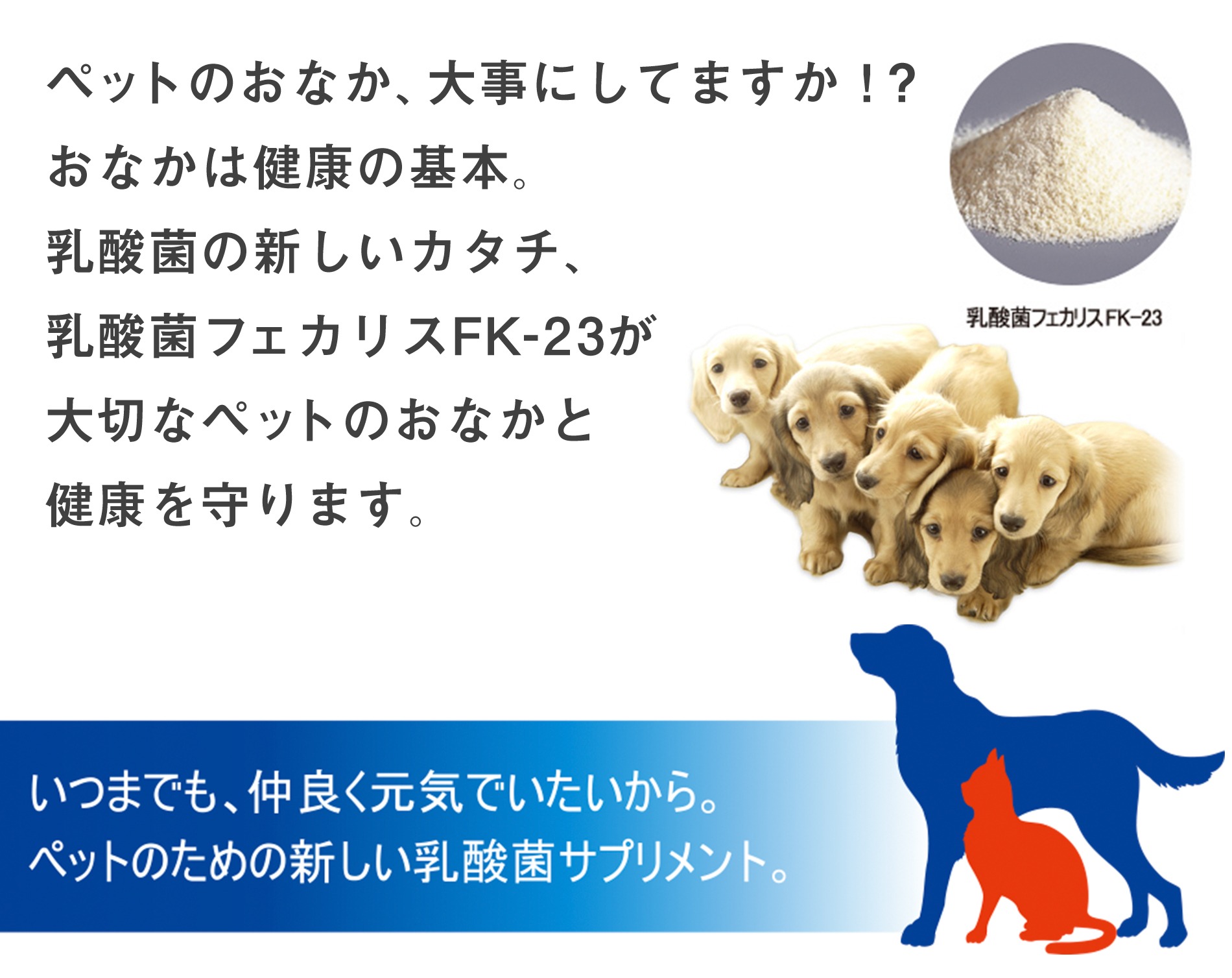 ペットの健康維持をサポートする顆粒タイプの乳酸菌サプリメント
