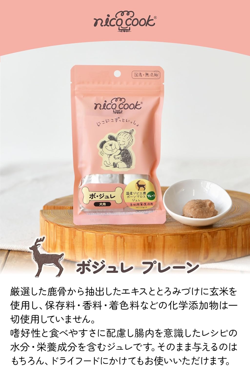nico cook ボ・ジュレ 国産ジビエ鹿ボーンブロスジュレ プレーン 犬用