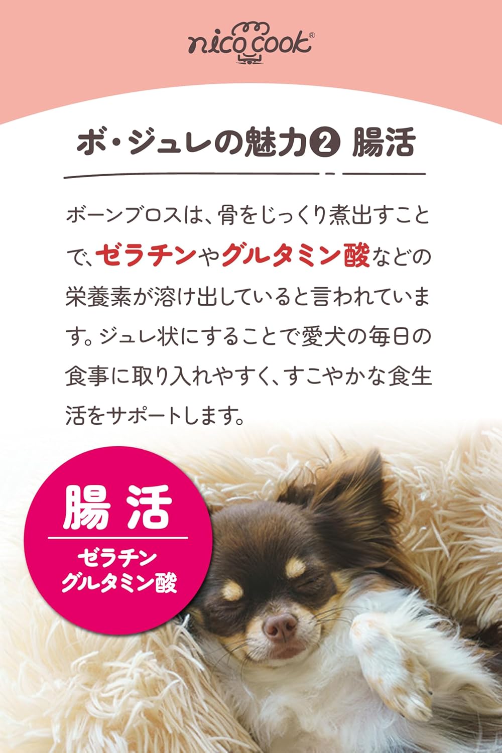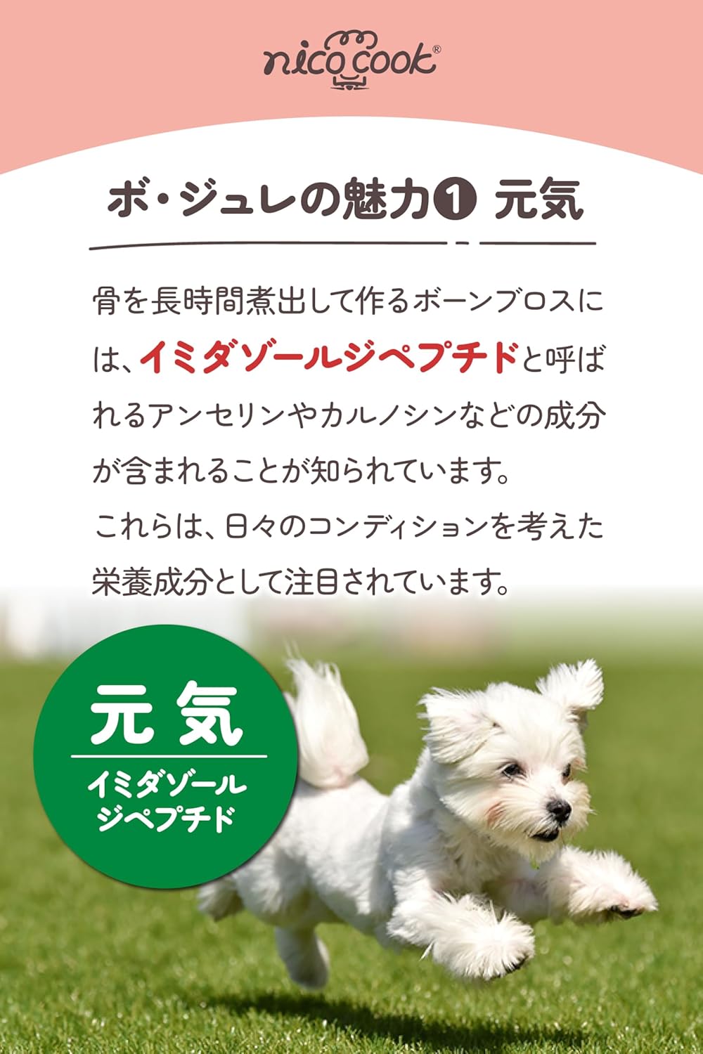 骨から溶け出したアミノ酸やコラーゲン、イミダゾールジペプチドなどの成分が含まれており、愛犬の毎日の健やかさを意識する方や、スムーズな動きや毛並みのコンディションを大切にしたい飼い主さまに。また、水分補給をサポートしたいときにも活用いただけます。