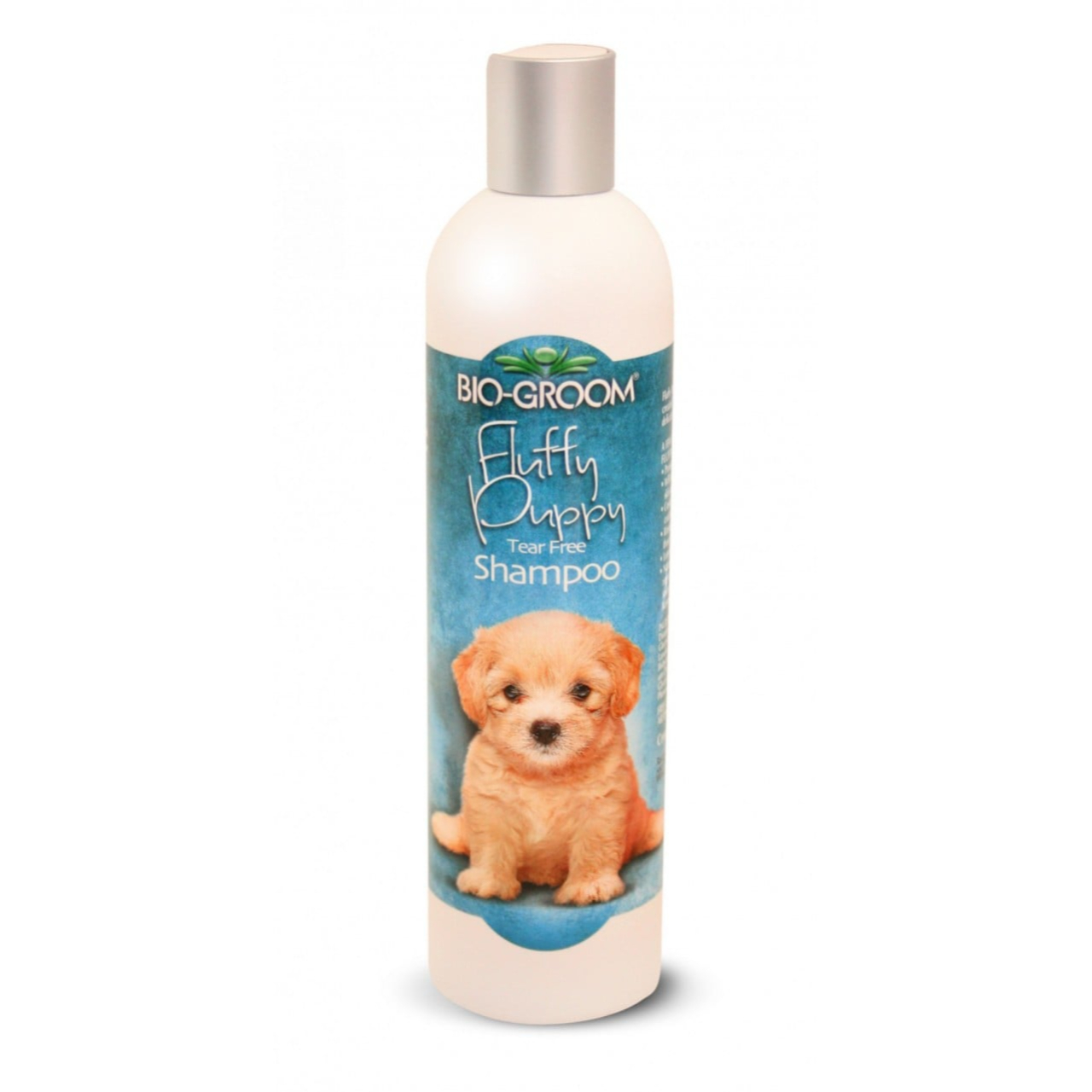 子犬のための、目にしみにくいやさしいシャンプー。泡切れよく、落ち着きのない子でも素早くすすげます。