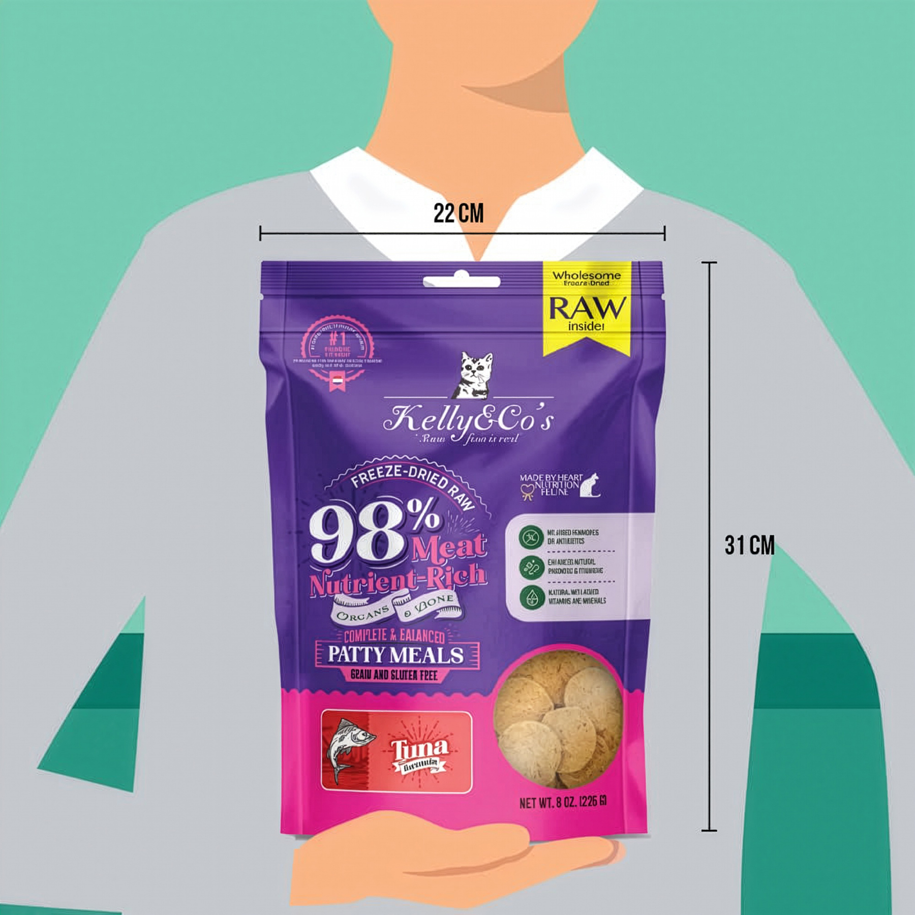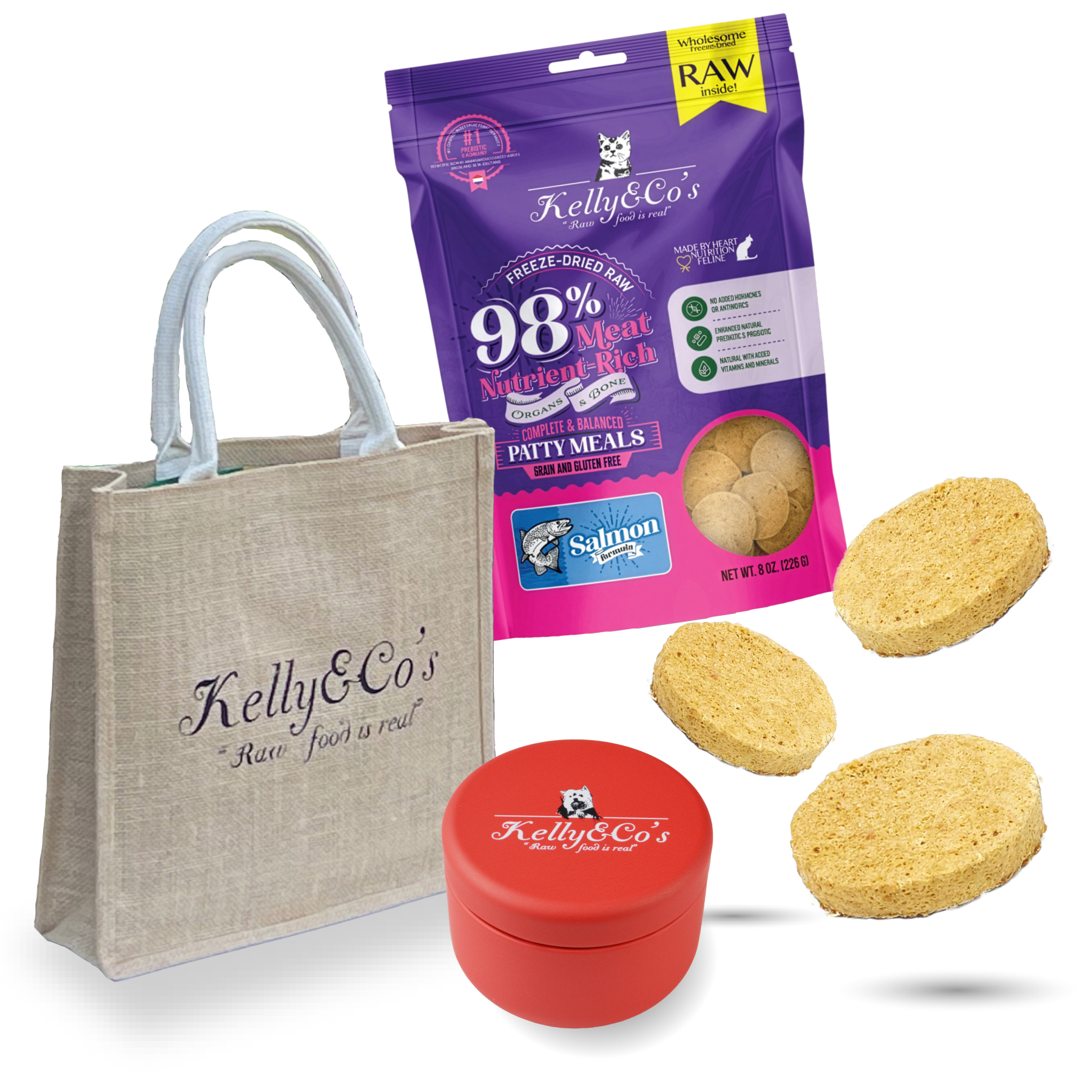ケリーアンドコーのパティミールは、手軽に与えられるローフードとして設計された総合栄養食です。フリーズドライ製法により、素材が本来持つ栄養と風味をそのまま凝縮しました。