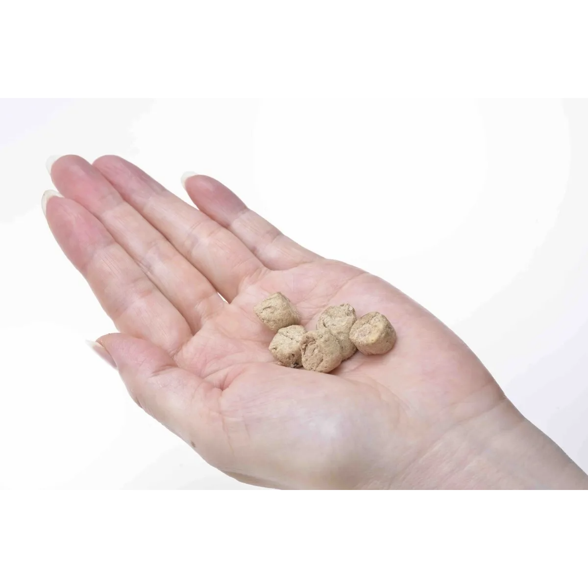 | 給与量 | 体重1kgあたり、1日1~2粒を目安に、そのまま、もしくは適度な大きさにちぎり、おやつや、トレーニングトリーツ、またフードのトッピングとして与えてください。 |